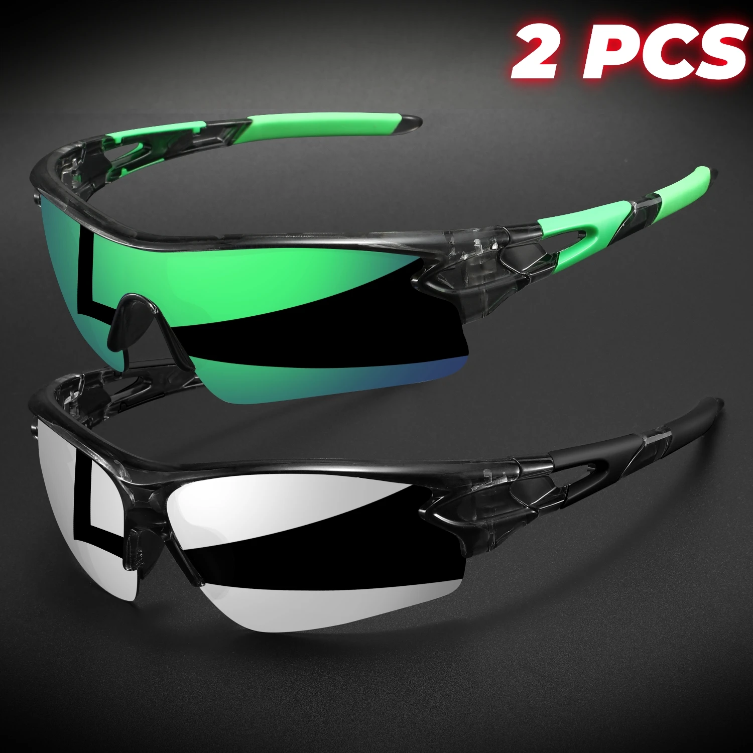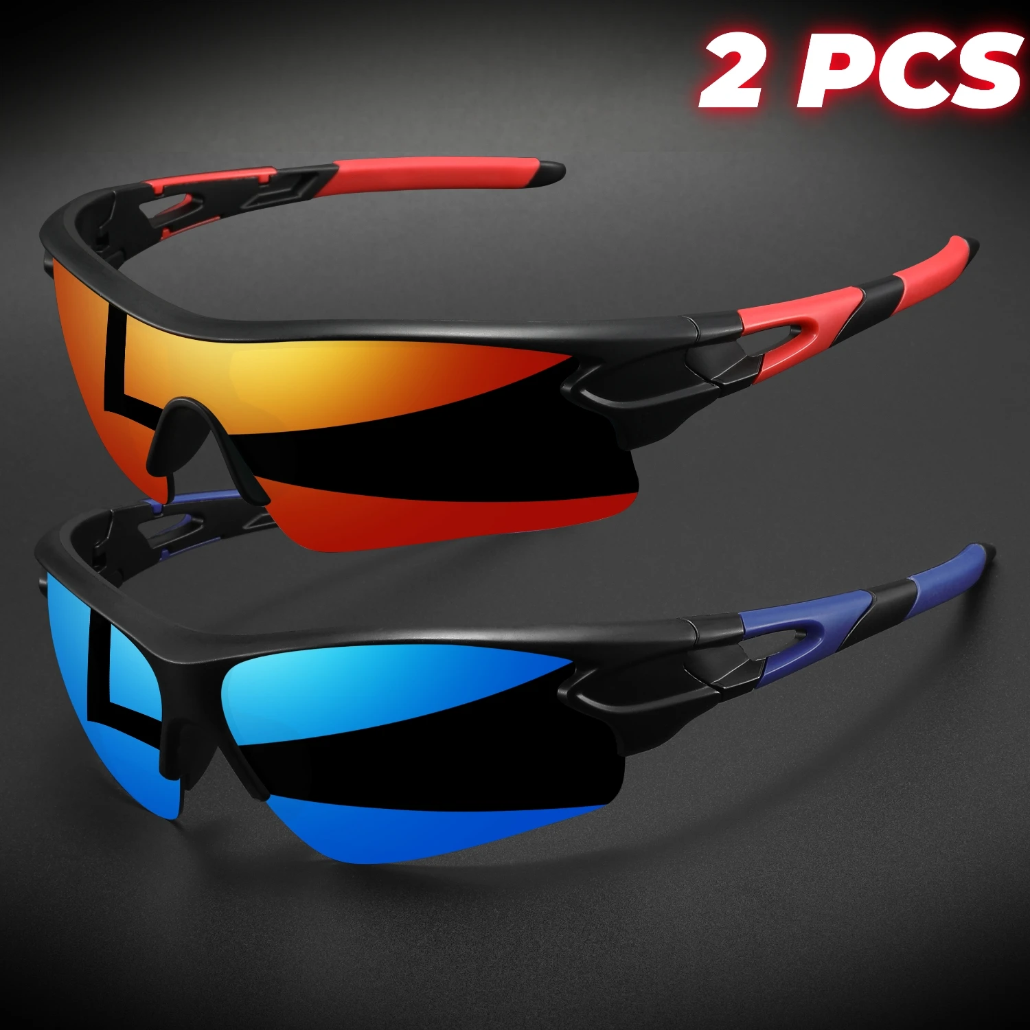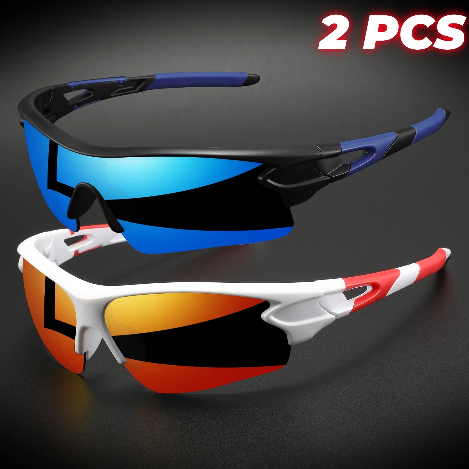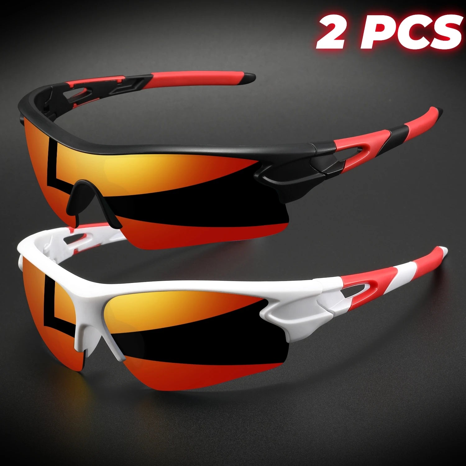 Lot de 2 paires de lunettes de sport de protection UV400 neuves - Verres enveloppants légers, unisexes, pour le vélo, la randonnée et un usage quotidien