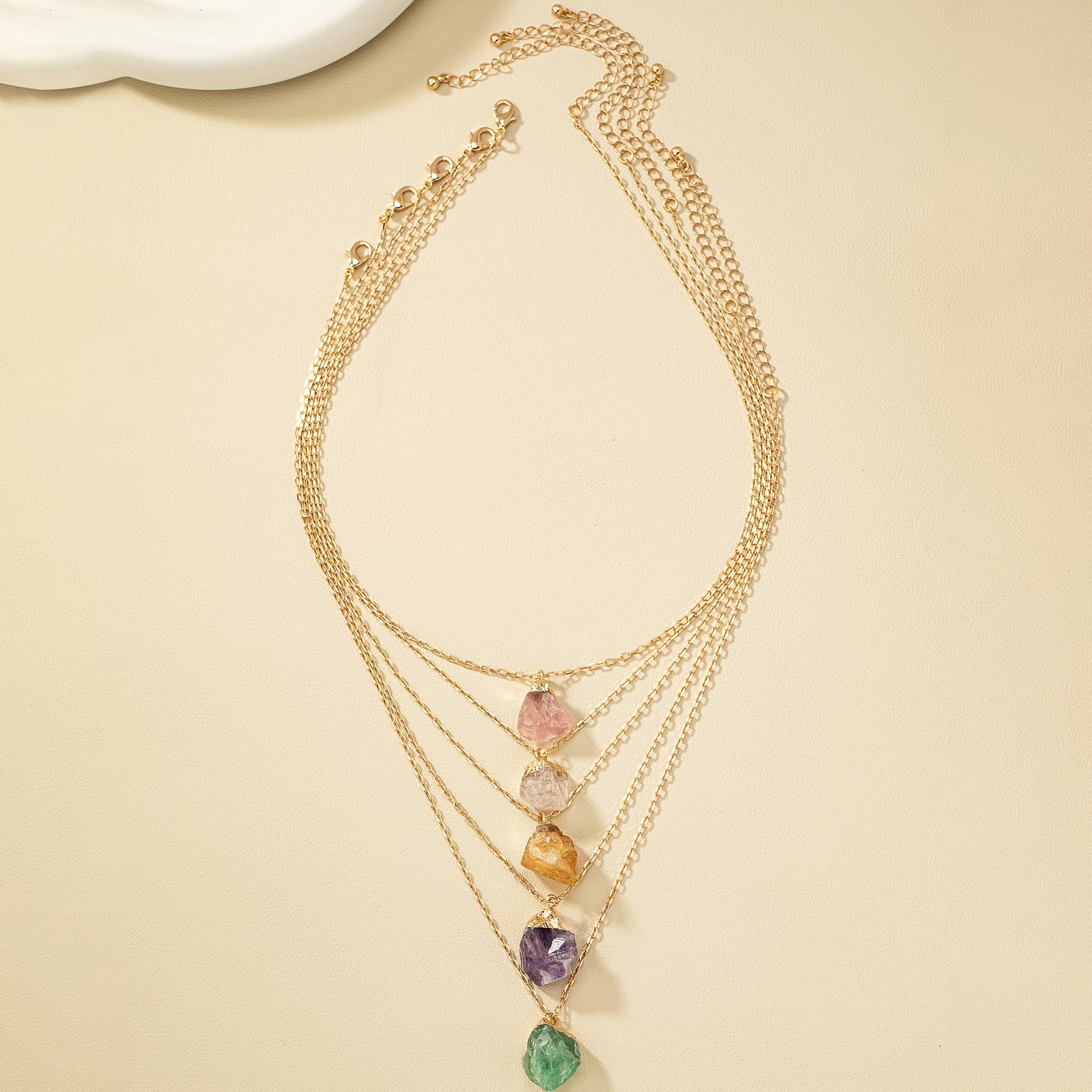 Collier pendentif en cristal naturel irrégulier, plaqué or 14 carats, pour femme